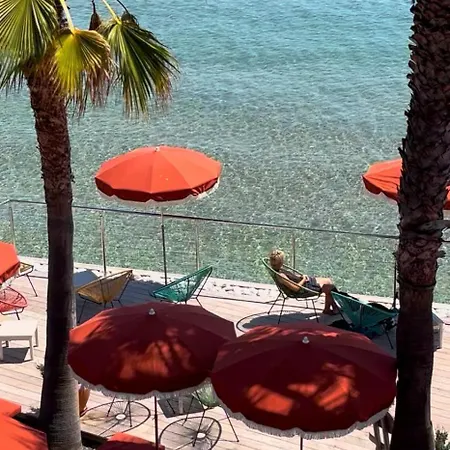 L'Hôtel Le Bor Hyères dispose d'une plage privée avec des fauteuils et des parasols.
