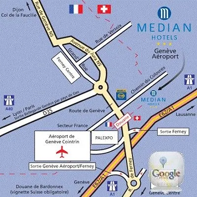 Hôtel Median Geneve Aeroport est situé à 50 km de l'aéroport d'Annecy Haute-Savoie Mont-Blanc, et à quelques minutes de l'arrêt de bus Ferney-Douane.