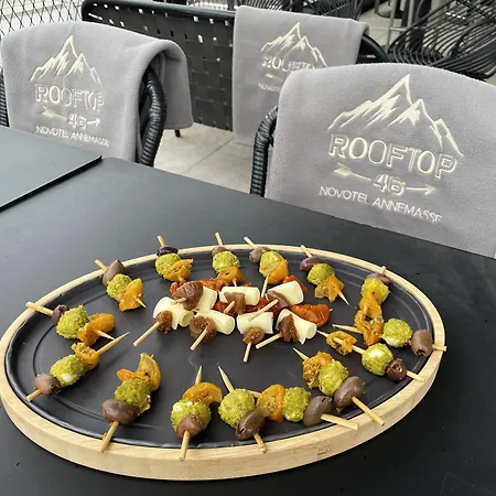 Novotel Annemasse Centre - Porte de Genève offre un petit déjeuner américain au restaurant. Le restaurant Latitude 46 accueille les clients dans une terrasse, et sert une cuisine locale. Le bar en terrasse a un Wi-Fi et une télé pour que vous profitiez de votre séjour à l'hôtel.